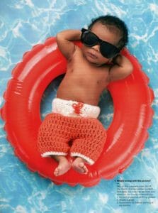 - Use baby sunglasses that filter UV rays with soft strap to keep in place (VERY important as the melanin in babies’ eyes is still forming)